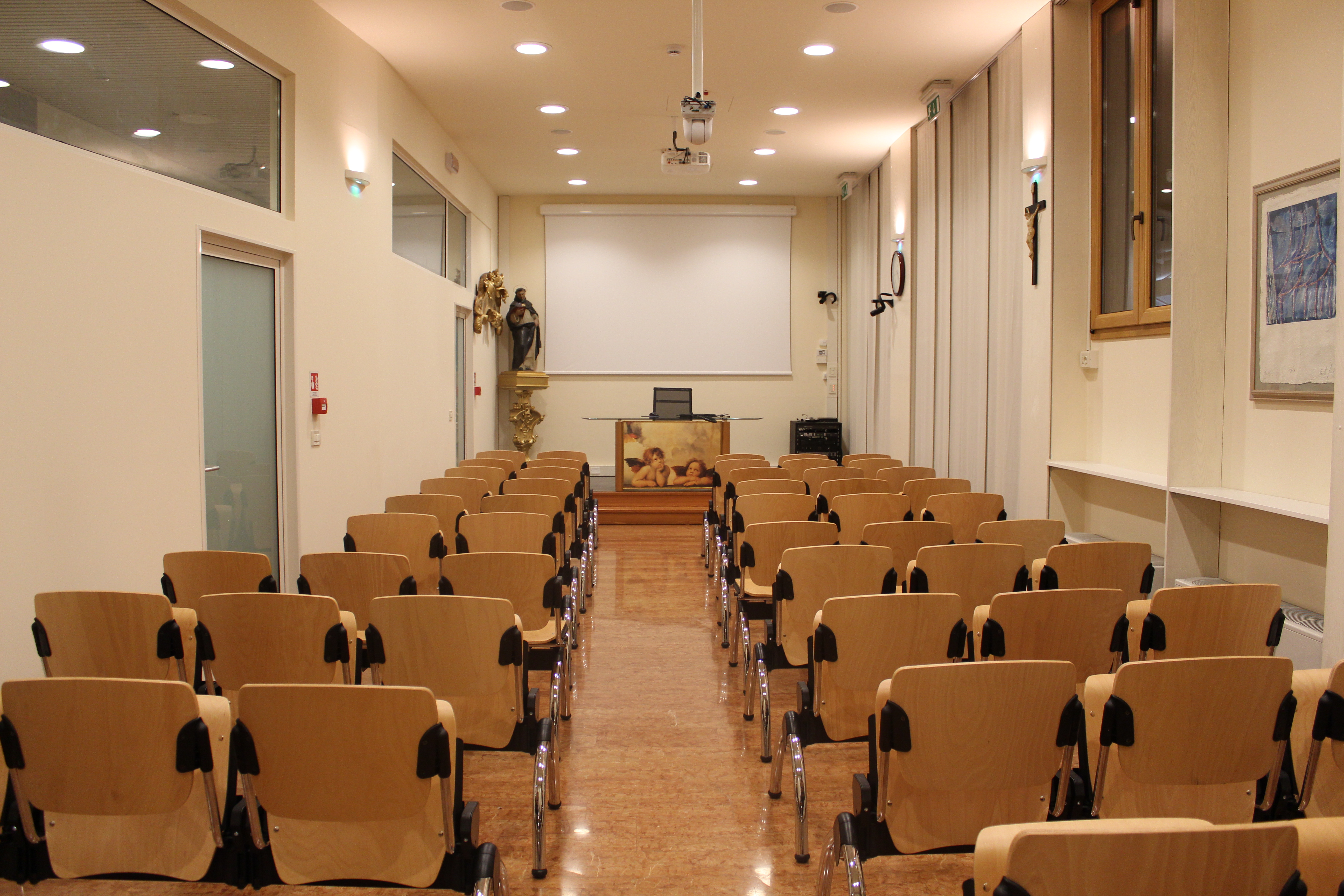 Sala da 40 posti a sedere € 200,00 mezza giornata, tutto il giorno € 400,00 (sala dotata di videoproiettore full-hd, inpianto di amplificazione audio, impianto di registrazione video hd e streaming live)